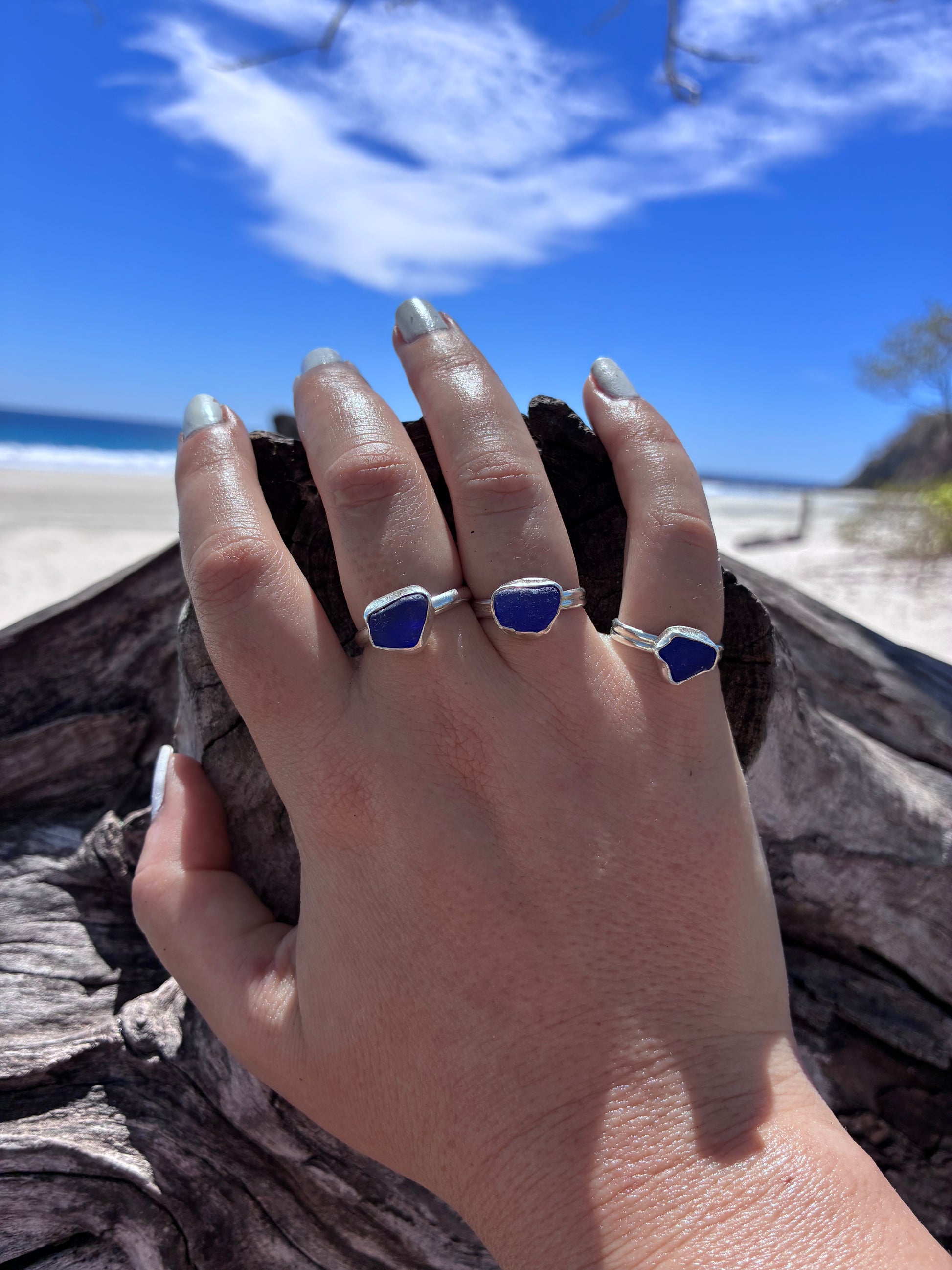 Mendocino Sea Glass Ring – Cobalt Blue Sterling Silver Ring