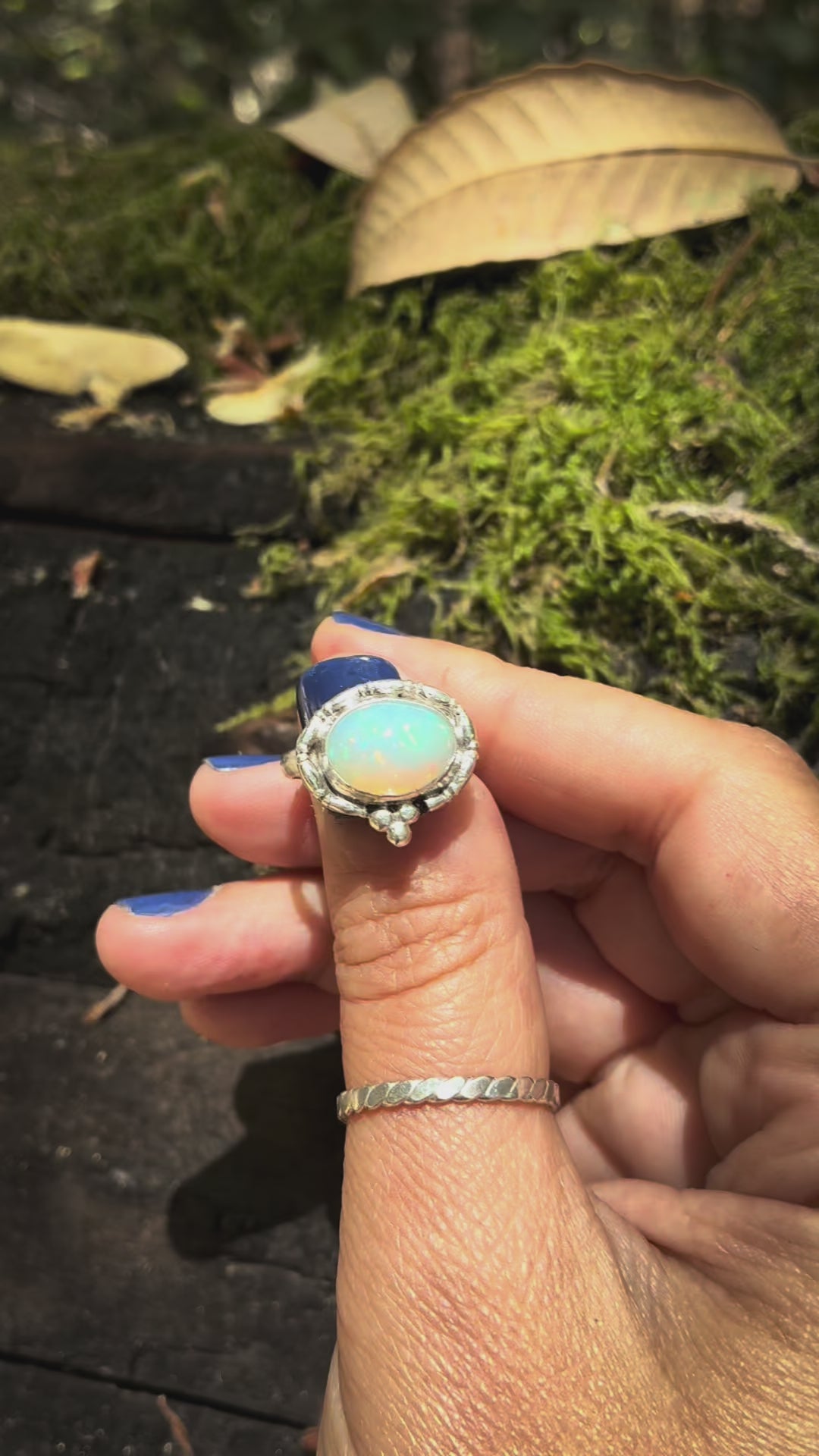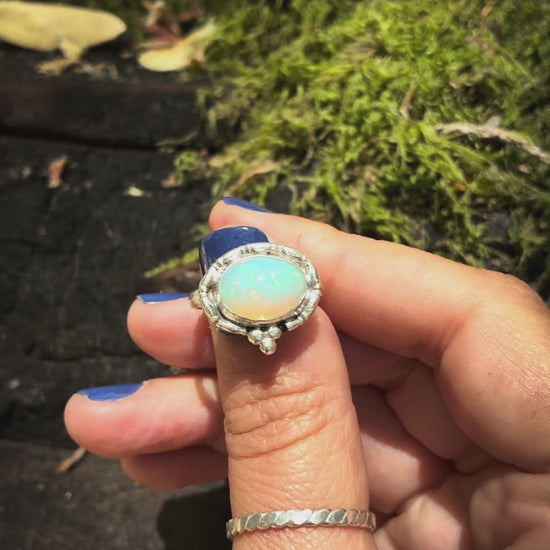 - Materials: Natural Ethiopian opal, .925 sterling silver