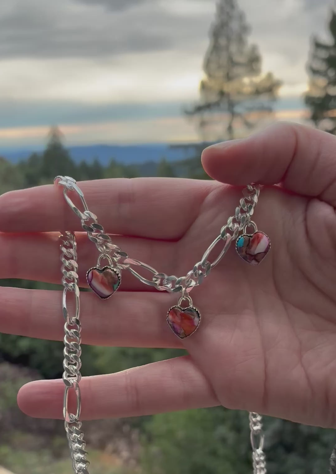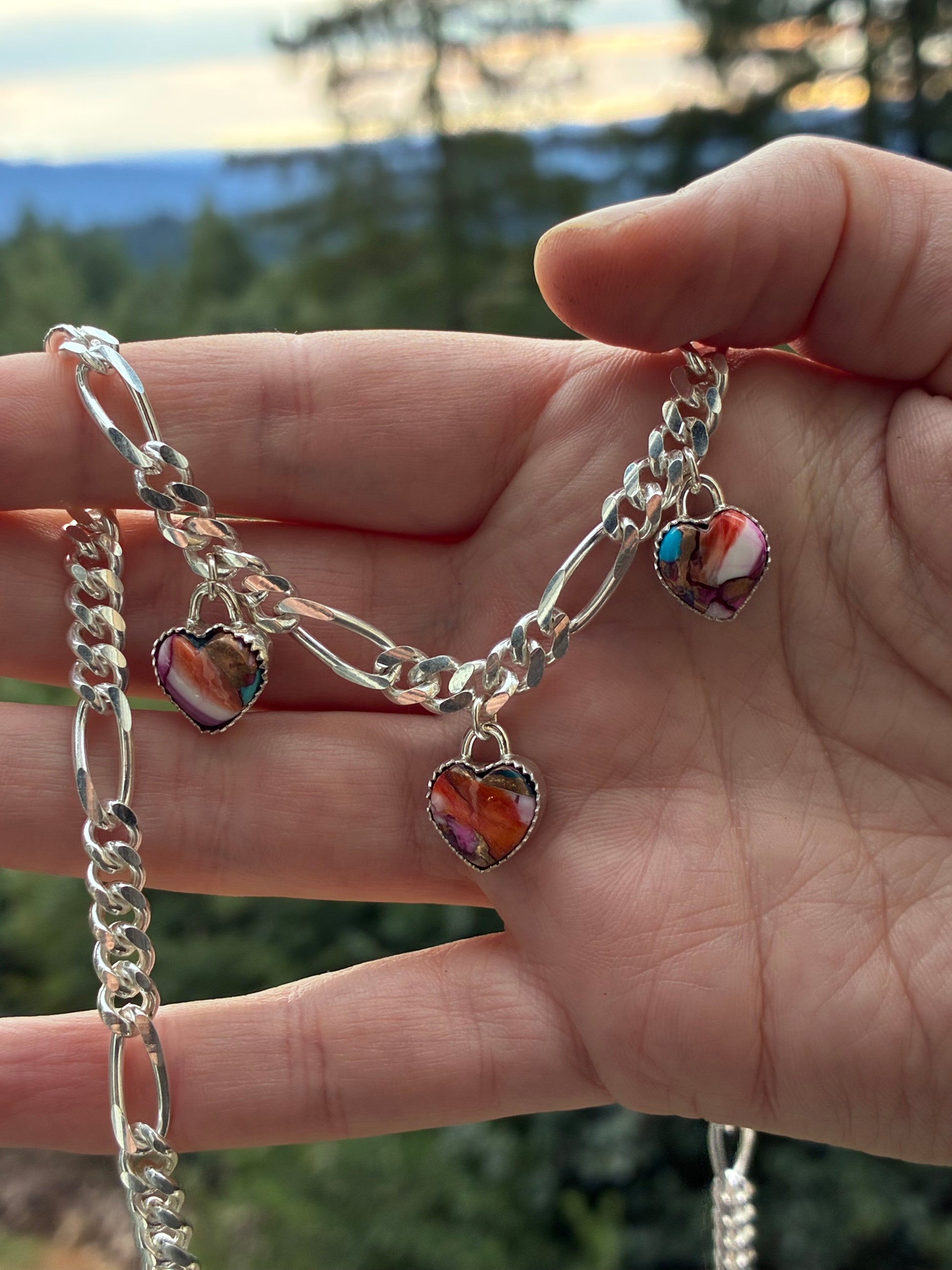 One-of-a-kind triple heart charm necklace handmade in solid sterling silver.