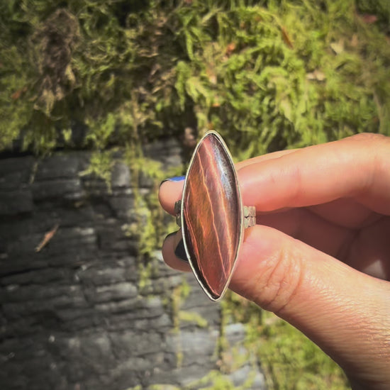 Striped Tiger Eye Marquise Ring - Size 6.25