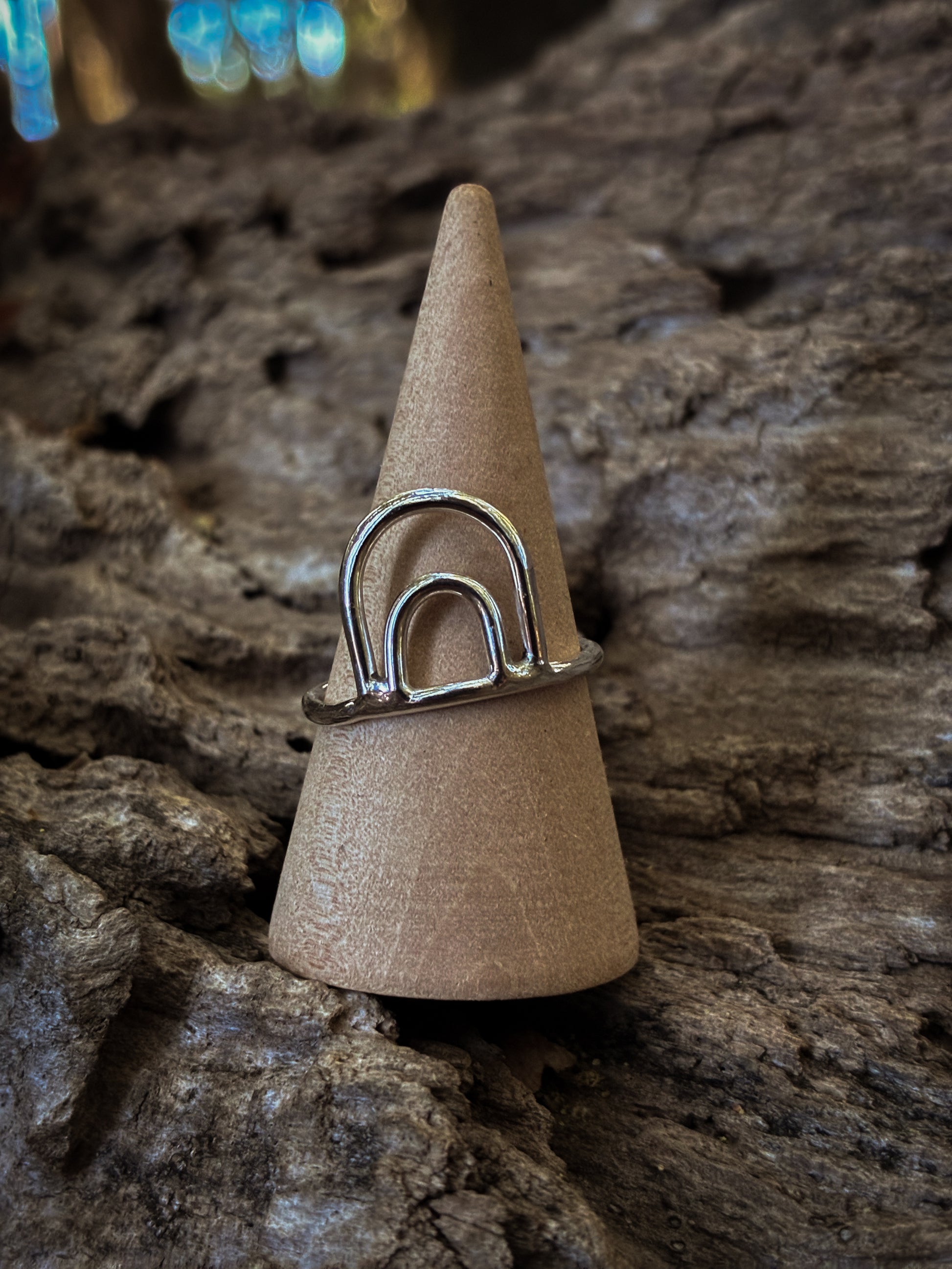 Playful yet modern, this handcrafted sterling silver ring features a sleek open rainbow design, symbolizing hope, positivity, and connection. Its minimalist lines make it perfect for stacking or wearing solo as a statement of personal style.